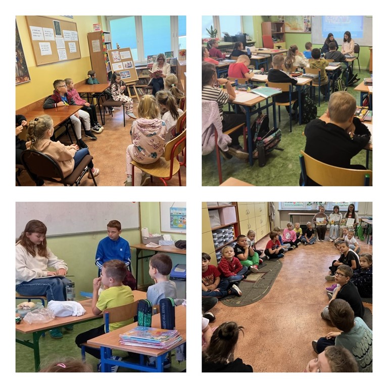 Do akcji włączyli się także starsi uczniowie, którzy z entuzjazmem prezentowali książki dla dzieci, dzieląc się swoimi ulubionymi tytułami i zachęcając maluchy do sięgania po literaturę. Wspólne czytanie stworzyło atmosferę bliskości i pokazało, że książki łączą pokolenia.